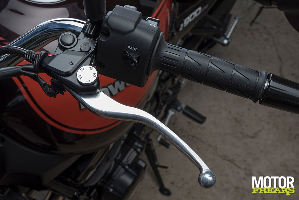 Waar iedereen wel weer van baalde waren de banden, die het bij temperaturen rond het vriespunt nog knap lastig kregen. Alhoewel ik nooit het idee had dat het echt eng werd, het zijn wel weer dezelfde banden die altijd de schuld krijgen. Persoonlijk had ik er niet eens zoveel moeite mee, maar ik kan het me voorstellen. Hetzelfde geldt voor de gasrespons, die weliswaar gewoon ‘modern strak’ en nagenoeg hetzelfde is als de standaard Z900, maar dat zou je dankzij de extra bottom power en kortere eerste versnelling nog iets beter kunnen merken. Stoorde mij niet zo, anderen iets meer. Ik schakelde gewoon naar tweede of derde en vond het verder prima. En als we het toch over schakelen hebben: ook dat gaat prima. Vond de bak nog wel wat nieuwig strak aanvoelen, maar toen ik bedacht dat dat met het oplopen van de kilometers wel wat beter zou worden, realiseerde ik me dat we dat tijdperk nu wel achter ons hebben gelaten. De bak is strak en zal dat waarschijnlijk ook blijven. De slip/assist koppeling doet ’t prima, is licht te bedienen en valt verder totaal niet op.
