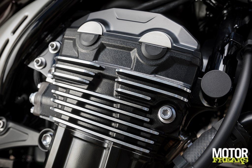 Dat is niet zomaar even gedaan, daar is moeite in gestoken. De airbox is begrijpelijk anders gevormd, maar ook de inlaatkelken hebben een nieuwe diameter, lengte en vorm. De nokkenassen hebben een ander profiel en de compressie is verlaagd van 11.8:1 naar 10.8:1, de krukas is zwaarder geworden voor een soepeler loop en een tweede balansas houdt trillingen in toom, maar elimineert ze niet helemaal om precies genoeg het ouderwetse karakter te behouden. Tel daarbij nog extra de nieuwgevormde buitenkanten met retro kenmerken en je kunt zo’n beetje van een nieuw blok spreken.