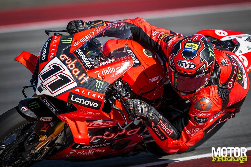 Bulega hield zich in FP1 nog rustig, maar liet in de tweede sessie zien wat de Panigale V4R in huis heeft. Zijn tijd was niet alleen goed voor de dagtop, maar ook slechts twee tienden verwijderd van Jonathan Rea’s polerecord uit 2022. Razgatlioglu, die de ochtendsessie aanvoerde met een 1’36.054, koos ervoor om in FP2 geen onnodige risico’s te nemen en concentreerde zich vooral op racetempo – met een serie indrukwekkend constante rondetijden in de lage 1’36’s.