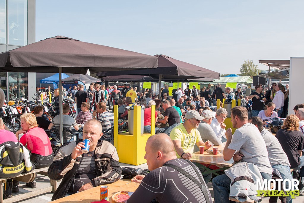"We hebben dit jaar flink verbouwd en beschikken over meer vierkante meters dan ooit. Ook is er in de directe omgeving van onze winkel volop parkeerplek. Verkeersregelaars wijzen je de weg. En weer of geen weer; wij hebben een overdekt terras. De ruimte onder de luifel, waar alle motoren staan, kunnen we bij minder goed weer afsluiten met licht doorlatende schuifzeilen. We zijn er dus helemaal klaar voor."