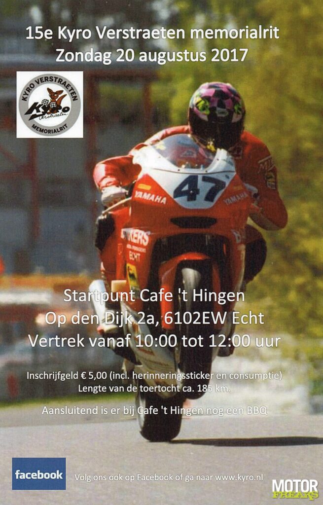 Mocht de naam Kyro Verstraeten niets zeggen, begin deze eeuw was de coureur het het Limburgse Echt een aanstormend talent in de wegrace motorsport, die als gevolg van de slopende ziekte kanker veel te vroeg aan zijn eind kwam.