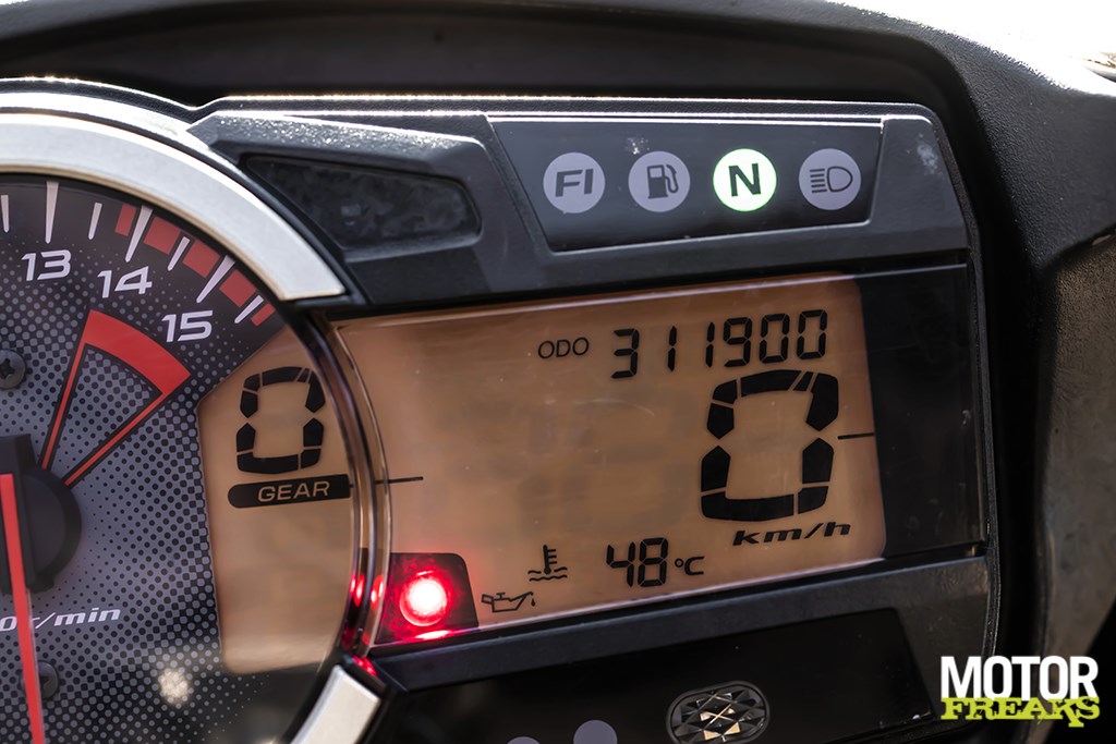 Natuurlijk waren we met zijn allen heel benieuwd of zo’n gereviseerde motor net zo goed is als een nieuwe. En dus gaat de GSX-R1000 bij Hoegee op de vermogensbank. Bij de koude start zie ik witte rook uit de uitlaat en dat is goed. Wit is gecondenseerd water, afkomstig van de verbrande waterstofatomen uit de benzine. Zwart zou een slecht verbrandend mengsel zijn, blauw zou op verbrande motorolie wijzen. Niets van dat alles. Het blok klinkt ook erg mooi, hij loopt lekker regelmatig stationair met een prachtige ronk uit de dubbele uitlaten. En als het gas dan bij een warme motor wordt opengetrokken, brult het blok van onderuit met een prachtige grom, groeiend naar een fraaie snerp en een woedende krijs op maximum toerental. Daar krijg je als motorliefhebber kippenvel van! Meeluisteren? Dat kan,we hebben er een filmpje van gemaakt!