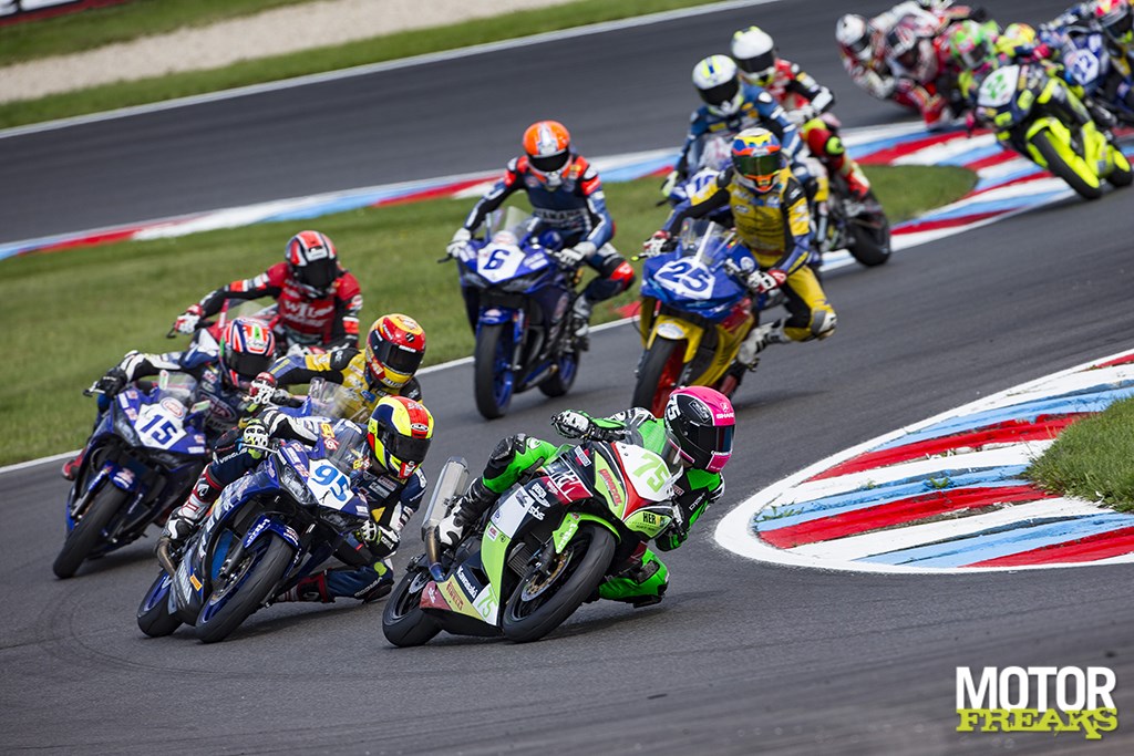 Waar de Supersport 300 in eerste instantie nog met de nodige scepsis werd bekeken heeft de raceklasse zich inmiddels ontpopt tot een superspannende raceklasse, waar tot wel twintig coureurs om de overwinning vechten en waar de verschillen zo klein zijn dat een gat slaan op de rest van het veld nagenoeg onmogelijk is. Hoewel de CBR500R dankzij z’n grotere cilinderinhoud beduidend meer koppel en vermogen heeft, worden twee op de drie plekken op de grid door de YZF-R3 gevuld. En dat is eigenlijk niet vreemd, van de drie gehomologeerde modellen staat de YZF-R3 het dichtst bij een wegrace supersport. Sterker dan de Kawasaki, lichter dan de Honda en daarnaast (net als de Honda) een 41 mm voorvork die veel beter voor racen is geschikt dan de 37 mm vork waarmee Kawasaki is uitgerust.