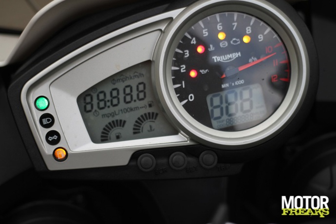 Eigenlijk kunnen we maar weinig verkeerds zeggen over de Tiger, de zitpositie zit goed, het geluid is geweldig, het motorblok is goed, comfort is goed, stuurt goed, remt goed… en dat is nou nét het hele punt. De Tiger is vanuit allroad insteek gezien goed geslaagd… voor een gemiddelde motorrijder bij een gemiddeld allround motorgebruik. De fiets scoort op alle vlakken wel een voldoende, maar blinkt nergens echt in uit. Net als de andere twee fietsen in dit gezelschap is de Tiger geen echte allroad en als je de specificaties erop naslaat zul je concluderen dat het net zo goed een Speed Triple had kunnen zijn, maar dan een die van hoge poten is voorzien. Wat terdege klopt, veel van de Speed Triple is daadwerkelijk op de Tiger terug te vinden. En daar zit 'm precies de kneep. Daar waar de andere twee zich zondermeer laten verleiden tot het betere gooi- en smijtwerk wordt die verwachting bij de Tiger door het rijwielgedeelte belemmerd. Hoe goed de motor op zich ook is, zodra hij geacht wordt de beduidend sterkere Multistrada en de op het korte werk enorm uitblinkende SMT bij te houden,
