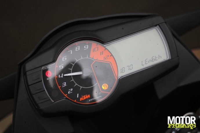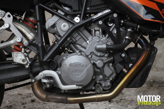 SMT of niet, alle KTM's op 17" wielen hebben in meer of mindere mate een Supermotard-achtig imago, de Superduke wellicht uitgezonderd maar ook die ontpopte zich in het verleden niet bepaald als een brave borst. Natuurlijk, we zouden een oogje kunnen dichtknijpen door de fiets als een Kwieke Tour Machine te benaderen, maar Motorfreaks zou Motorfreaks niet zijn als we dat niet zouden doen en de fiets te rijden waarvoor 'ie door KTM zelf in het leven is geroepen. De hoge en smalle zitpositie, het brede stuur en een dashboardje zonder poespas nodigt uit om te vegen, wat de fiets dankzij zijn uitstekende rijwielgedeelte en 48 mm WP upside-down voorvork meer dan uitstekend doet.