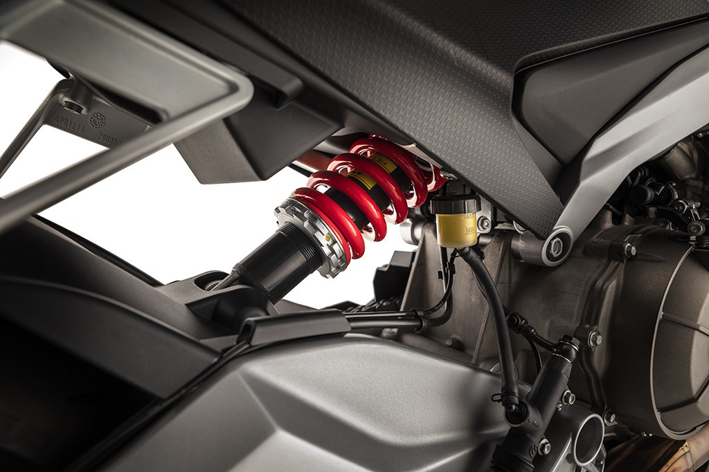 Aprilia heeft de wielbasis zo kort (en het gewicht zo laag) kunnen houden door het nieuwe 660 paralleltwin blok als dragend deel in de constructie op de nemen. Aan de voorkant is een volledig instelbare 41 mm Kayaba upside down voorvork voorzien, terwijl het achterwiel via een eveneens instelbare monoshock wordt afgeveerd. Radiale 4-zuiger remmen voor komen uiteraard uit de fabriek van Brembo, net als de remschijven, de remklauw achter en beide rempompen.