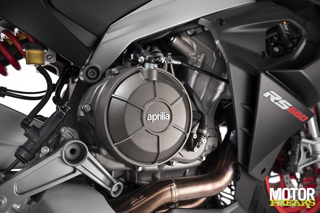 Net als de RSV4 (en de RS-GP MotoGP racer) heeft de RS 660 een boring van 81 mm, wat gecombineerd met een slag van 63,9 mm de cilinderinhoud op 660 cc heeft gezet. Wat ergens best opmerkelijk is, aangezien in de roadracing scene de maximum cilinderinhoud van de Lightweight raceklasse 650 cc is. Het tweede opmerkelijk is dat de RS 660 wordt opgegeven voor een topvermogen van 100 pk bij 10.500 tpm (max toerental is 11.500 tpm) en een maximum koppel van 67 Nm bij 8.500 tpm, waarvan bij 4.000 toeren al 80% beschikbaar is.