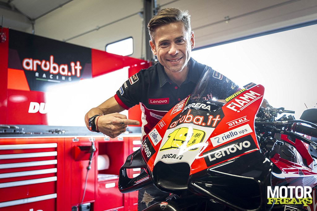 Na de test met de GP23 te hebben afgerond keerde Bautista nog even naar de baan terug om een paar rondjes op zijn Ducati Panigale V4R te doen, om weer bekend te raken met de fiets waarmee hij over anderhalve week in Donington zal aantreden.