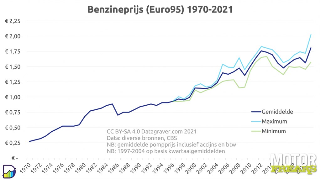 De benzineprijs bereikte z'n hoogste niveau op 18 november, toen er gemiddeld 2,145 euro per liter moest worden afgetikt. Een groot deel van de benzineprijs bestaat uit accijns (0,82 euro) en btw, waarbij de hogere benzineprijs de staat nog extra btw inkomsten oplevert.