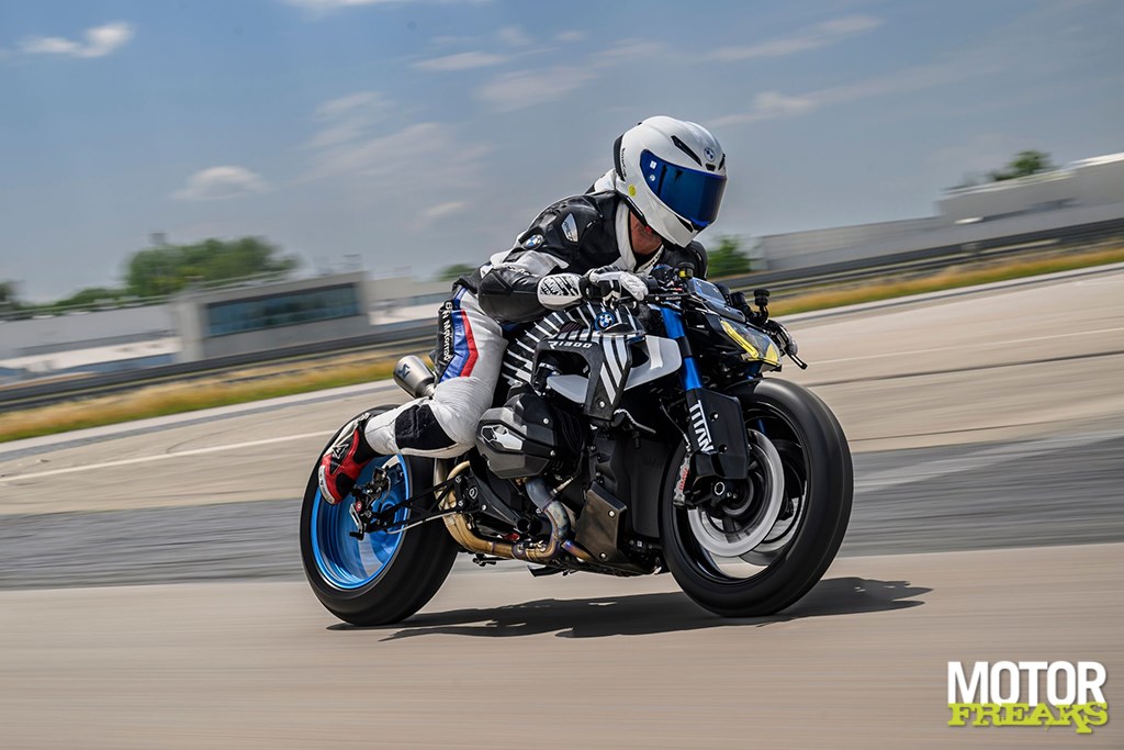 Tussen de twee titanium einddempers zit een agressief ogende lachgasfles die het injectiesysteem met een druk op de knop voorziet van lachgas. Zodra de zuurstofboost in de motor is gearriveerd, wordt de BMW R 1300 R "TITAN" via een nauwkeurig ontworpen transmissie en cardanaandrijving richting de finish 400 meter verderop gekatapulteerd, terwijl de remprestaties zijn toevertrouwd aan een high-spec Magura HC3 remklauw.