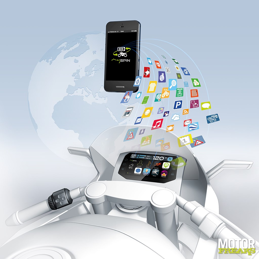 Meer dan 90 procent van motorrijders in Duitsland gebruikt een smartphone om een route te plannen, tijdens het rijden of bij een stop. Daar hebben ze bij Bosch op ingespeeld met de ontwikkeling van mySPIN, een integratie tool die je smartphone met de motor verbindt.