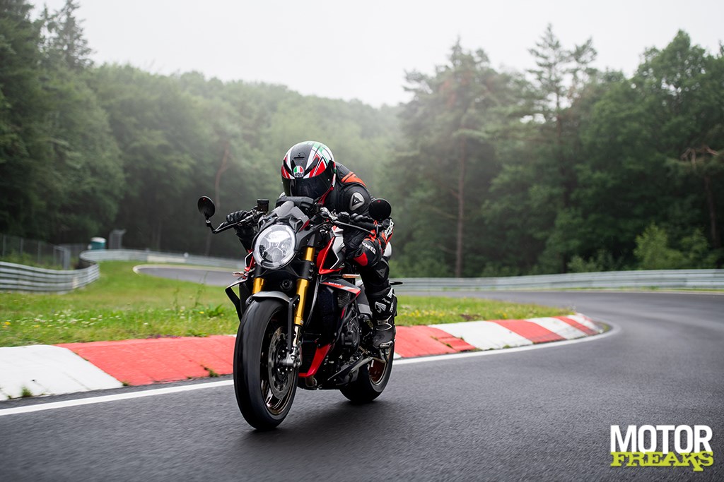 De Brutale lichter maken is het uitgangspunt van deze Nürburgring versie geweest. Want hoe lichter een fiets, hoe sneller dat 'ie van richting te veranderen is en hoe effectiever de acceleratie en de remmen zijn. Volgens MV blinkt de Brutale 1000 Nürburgring uit in dynamische performance, dankzij de aanpassingen die aan het rijwielgedeelte en de technische uitrusting zijn gegaan.
