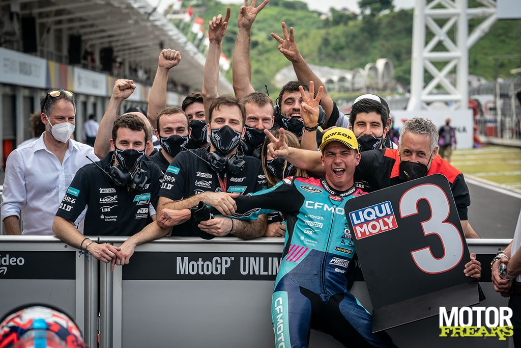 hoogste winpercentage van 42,86%. CFMOTO won de constructeurstitel met een voorsprong van 88 punten op KTM, en het CFMOTO Aspar Team won de team-titel met een voorsprong van 111 punten op de nummer twee. In de Moto2 eindigde CFMOTO haar eerste seizoen Moto2 met Aspar Racing op de 8e plaats met de Brit Jake Dixon, die 2 overwinningen, 5 podiums en 2 pole positions wist te scoren. Het was voor CFMOTO een eerste overwinning in de Moto2.