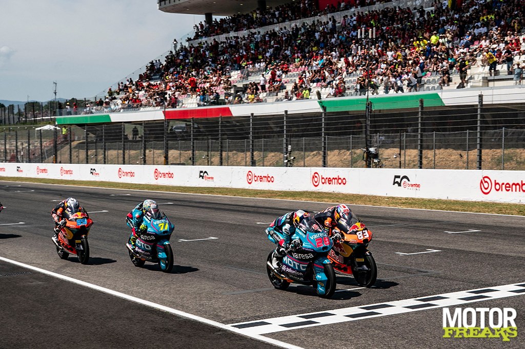 Quiles voerde lange tijd het veld aan, maar zou met nog 2 ronden te gaan ook crashen trad daarmee in de voetsporen van zijn mentor Marc Marquez, die hem samen met zijn broer Alex intensief begeleid. Max’ een eerste pole in Le Mans, een eerste podium in Silverstone en een eerste overwinning in Mugello was namelijk een blauwdruk van de carrière van Marc Marquez, die zijn eerste pole, podium en overwinning op exact dezelfde circuits had gehaald. Met dat verschil dat Marc er 2 jaar over had gedaan.