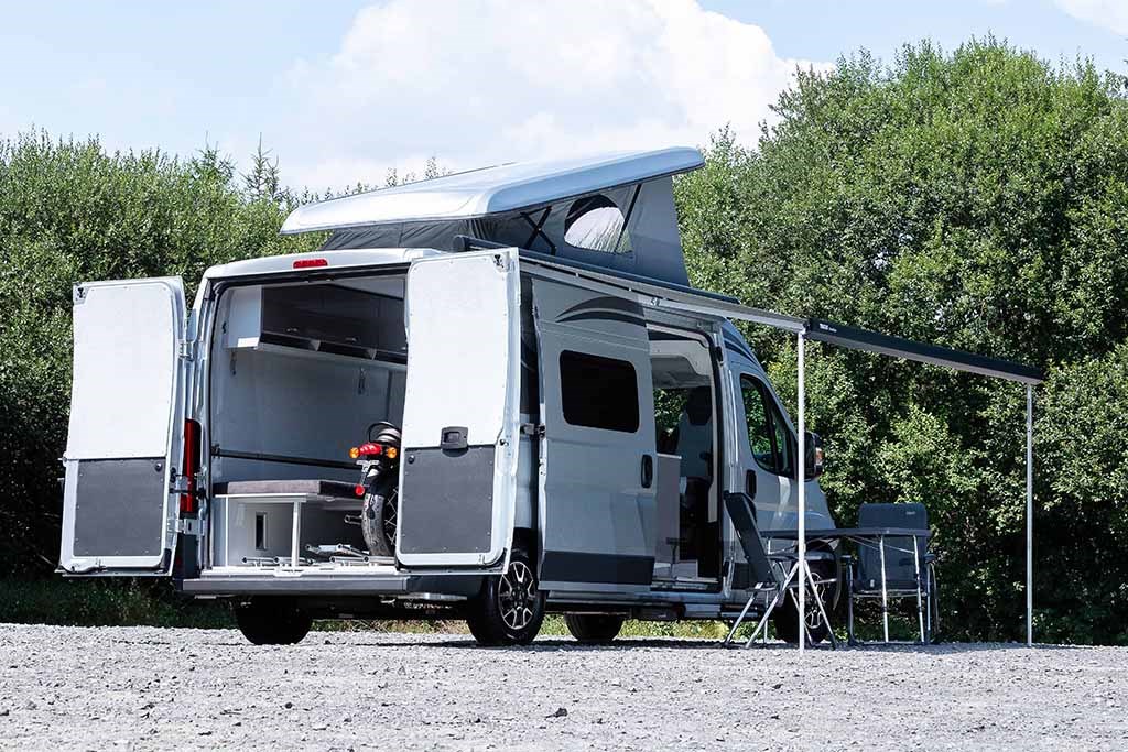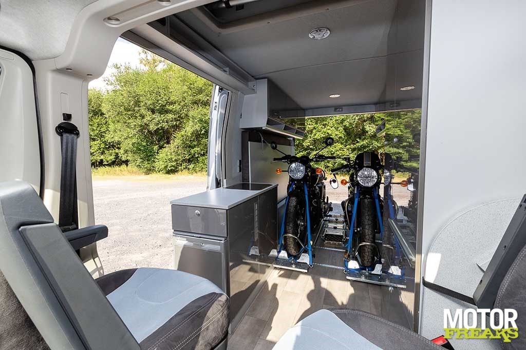 De Jumper Biker Solution is gebaseerd op de L3H2 Jumper en biedt plaats aan twee motorfietsen, die met behulp van een elektrische lier comfortabel kunnen worden geladen en dankzij het railsysteem met voorwielklem veilig kunnen worden vastgezet. Voor je complete motoroutfit en bagage zijn ruime opbergkasten voorzien.