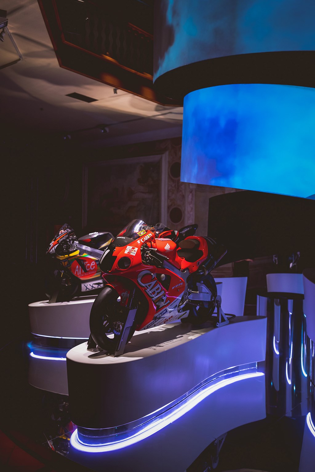 Onder de machines die in het pittoreske kasteel stonden opgesteld was onder andere de YZF750 waarmee Colin zijn debuut maakte in het WK Superbike en in de periode 1995 – 1997 aantrad, evenals de V4 Castrol Honda RC45 waarmee hij in 1999 tweede in het wereldkampioenschap werd en de VTR1000 SP1 RC51 waarmee hij het jaar daarop zijn eerste wereldtitel realiseerde. Door het nabij het circuit van Motegi gelegen Honda Collection Hall museum was ook de 2002 VTR1000 SP-W machine waarmee Colin in 2002 de 8 uren van Suzuka wist te winnen met wijlen Daijiro Katoh als teamgenoot - de tweede van zijn twee overwinningen op machines die met een Akrapovič uitlaat waren uitgerust, na een jaar eerder de voor Japanners belangrijkste race van het seizoen samen met Valentino Rossi te hebben gewonnen. Naast de SP-W stond de SP-2 in Castrol kleuren opgesteld, waarmee Edwards in 2002 zijn tweede WK Superbike wereldtitel won, waarnaast de Aprilia RS Cube stond opgesteld waarmee hij zijn debuut maakte in de MotoGP in 2003, voordat hij in 2004 naar Honda ging en het seizoen op de 5eplaats eindigde in het Telefonica satellietteam, om