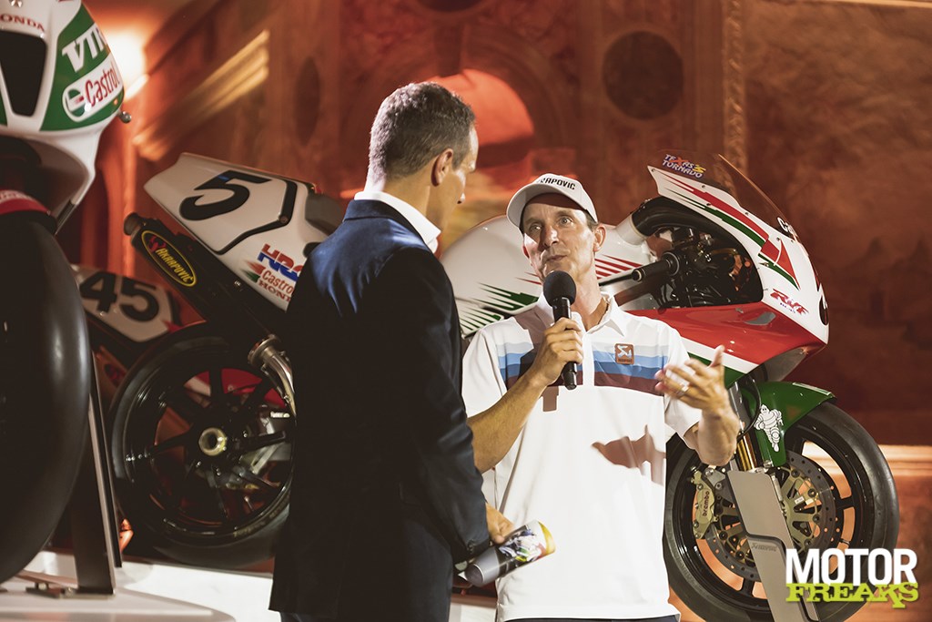 Zeven machines waarmee Colin Edwards heeft geracet stonden spectaculair opgesteldShuhei Nakamoto, Aprilia directeur Jan Witteveen, de Zwitserse constructeur Eskil Suter en verschillende van Colins voormalige rivalen als de Japanse Superbike ace Noriyuki Haga en voormalig Grand Prix winnaar en huidig MotoGP pitreporter Simon Crafar. Alex Hoffman was de MC van de avond en in de hal van het kasteel stonden zeven machines opgesteld waarmee Edwards in zijn 8 jaar lange WK Superbike carrière, waar hij in 2000 en 2002 met de wereldtitel aan de haal wist te gaan, en 10 jaar MotoGP heeft geracet.