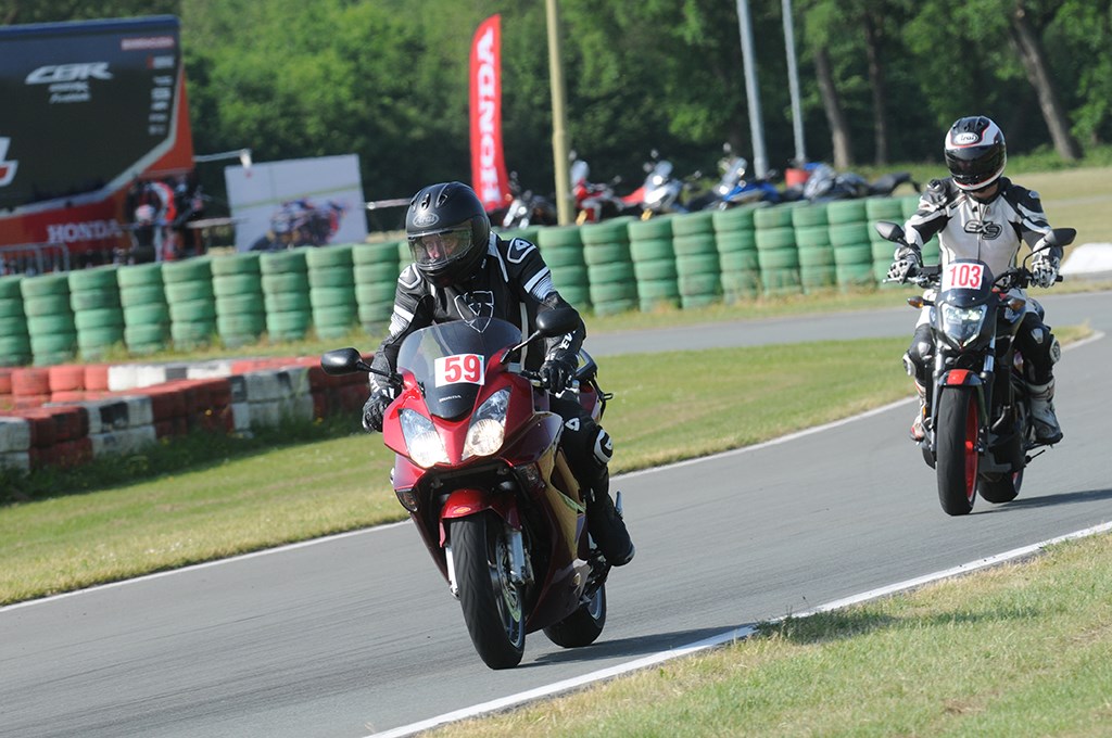Zo is het toch leuk om te zien hoe er progressie gemaakt wordt, of iemand nou op een Fireblade, Deauville, Gold Wing of –jawel- een Fury rijdt. En dat is nou net het idee: ook als je niet op een sportmotor rijdt kunnen de tips die de instructeurs geven handig zijn. Een bocht lezen is overal hetzelfde, je kunt pas gas geven als je de bocht uit komt, dus is het goed beoordelen en interpreteren van een bocht een pluspunt: hoe beter je een lijn kiest, hoe vlotter je er doorheen komt. En dat is dan ook nog eens goed voor de hellingshoek en rust in het complete rijwielgedeelte: als je alles netjes en op volgorde doet,