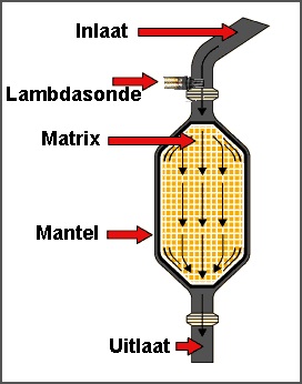 De driewegkatalysator zet deze stoffen om in kooldioxide, water, en stikstof. Om de oxidatie- en reductiereacties tegelijk te laten verlopen is het noodzakelijk om een chemisch ideaal (officiële benaming: stoichiometrisch) lucht/brand-stofmengsel aan de motor te voeden. Dit wordt gerealiseerd door precieze brandstof-injectie in de cilinders via een microprocessorregeling, die op zijn beurt wordt aangestuurd door de zogenaamde lambda-sonde. Deze lijkt wat op een bougie en word vlak voor de katalysator gemonteerd. Nu is ook duidelijk waarom het onmogelijk is om dit type katalysator te combineren met carburateurs: deze reageren niet alleen te traag, maar mengen brandstof en lucht ook te onnauwkeurig om van enig nut te zijn.