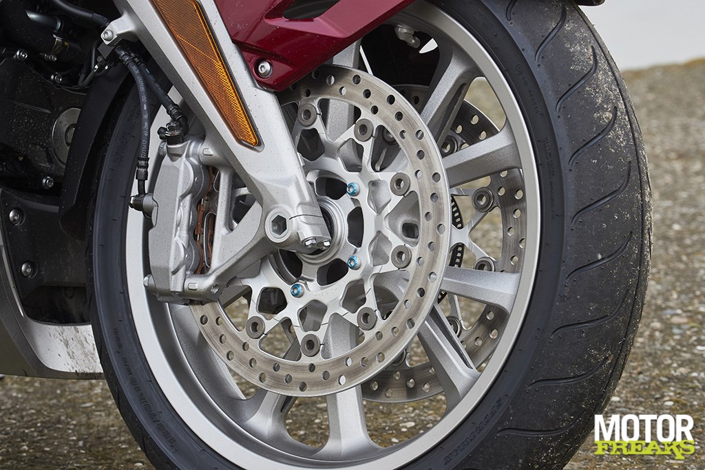 Begeleid door het betere Studio Brusselwerk zou je, met een oog op de navigatie, nog bijna vergeten dat je aan het motorrijden bent, maar daar heeft Honda ook een antwoord op: het ding rijdt als geen Gold Wing hiervoor ooit gereden heeft. En dan weten we nog goed hoe die reed. Dit is een andere klasse. Bijna vijftig kilo voordeel en vijftien jaar extra ontwikkeling verder laten zich niet zomaar verloochenen. Die ontwikkeling heeft bijvoorbeeld gezorgd voor elektronische vering, maar dat is nog niet eens het meest bijzondere. De voorwielophanging is Honda’s interpretatie van de Hossackvork, Duolever, Fior of hoe je het noemen wilt, maar dan nog eens extra gepimpt door de genoemde elektronische vering.