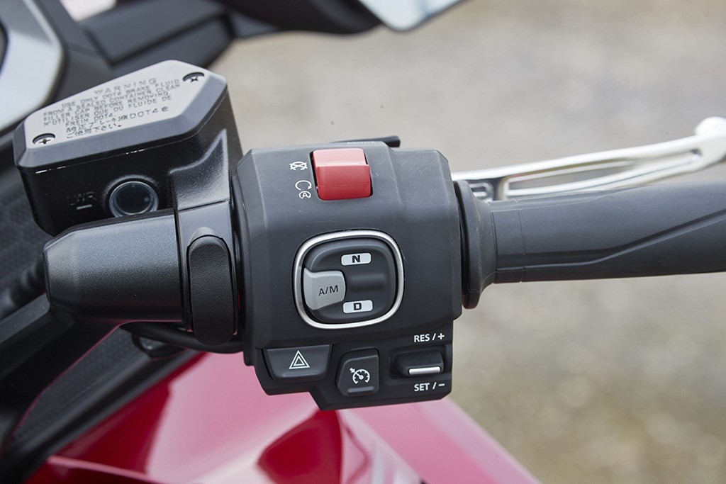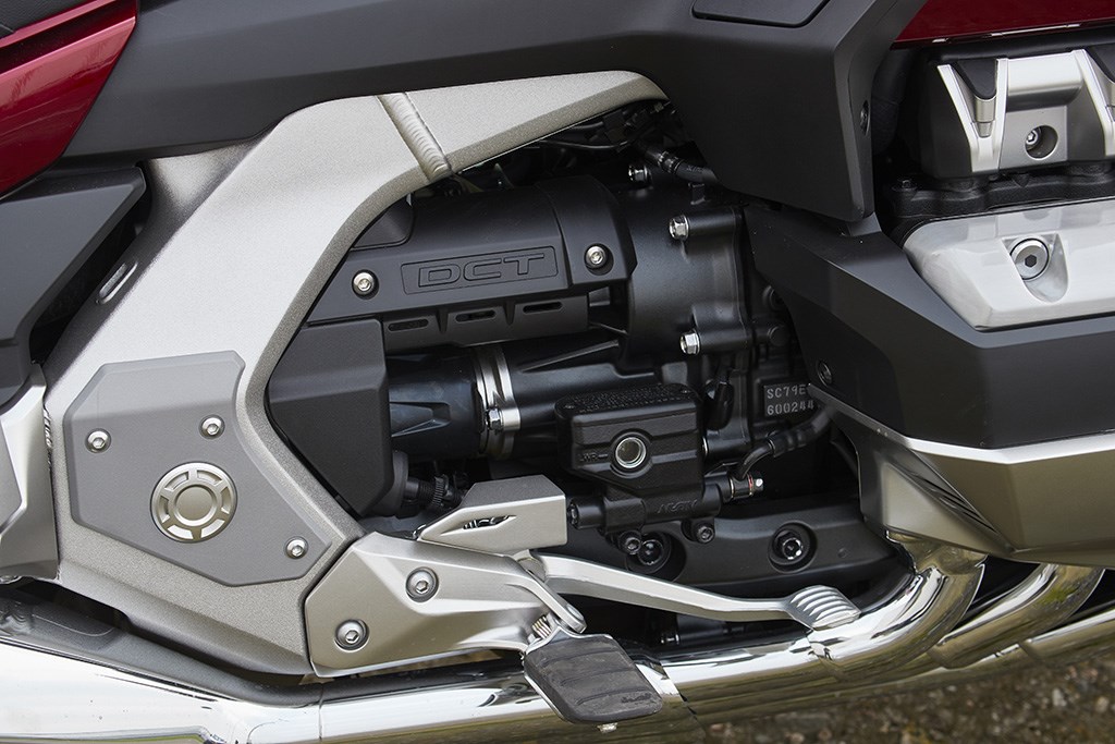 heeft immers ook vanzelfsprekend een automaat. Nooit eerder was DCT zo voor de hand liggend als bij de Wing. En dus worden we niet teleurgesteld. Hier is het gewoon voor uitgevonden, lijkt het. De turbineachtige vermogensopbouw wordt perfect overgedragen door de bak, die de motor in heel rap tempo vooruit jaagt… totdat je ver boven de toegestane snelheid rijdt zonder het te merken. Die windbescherming is namelijk nog eens een beetje gepimpt door de nieuwe aerodynamica... en een elektrisch verstelbare ruit. Nu wél dus…