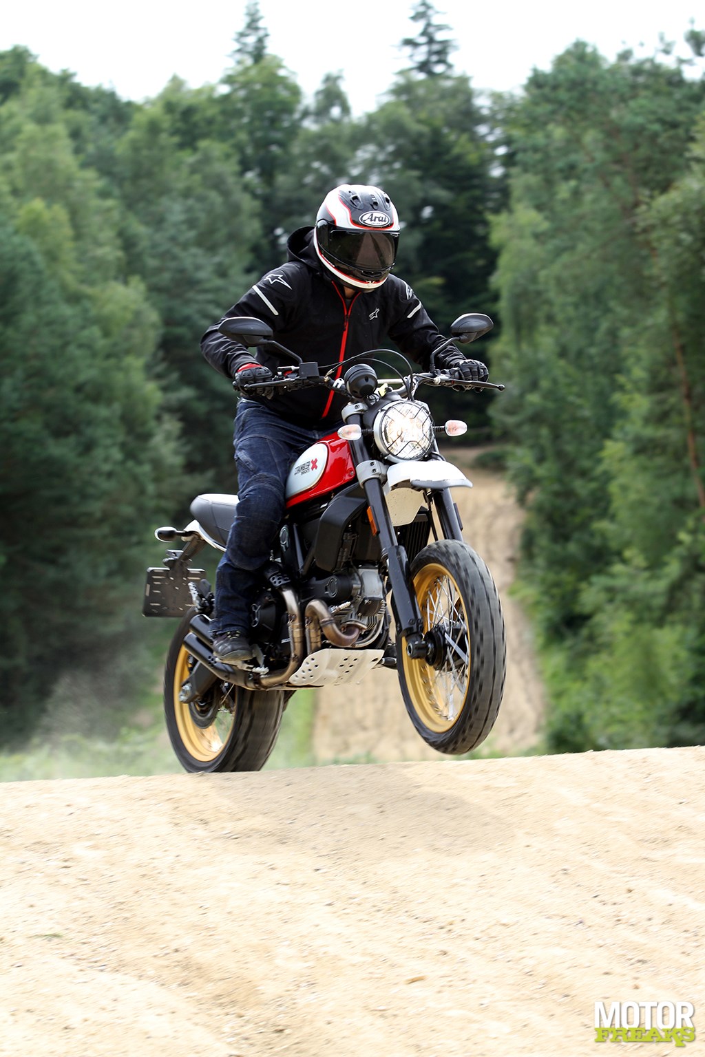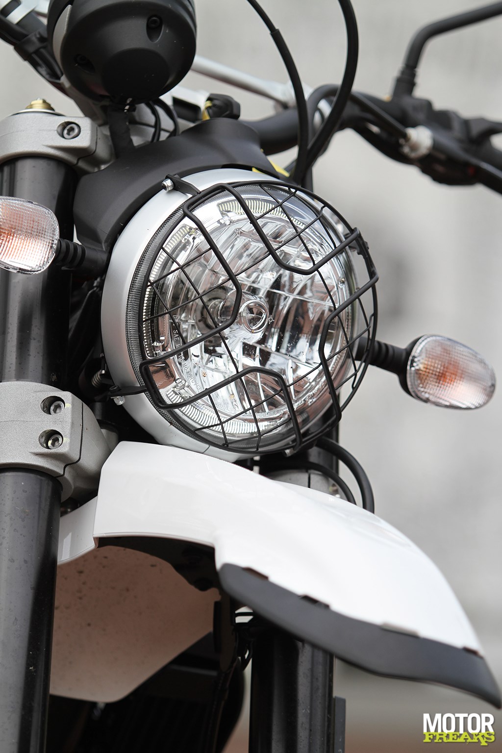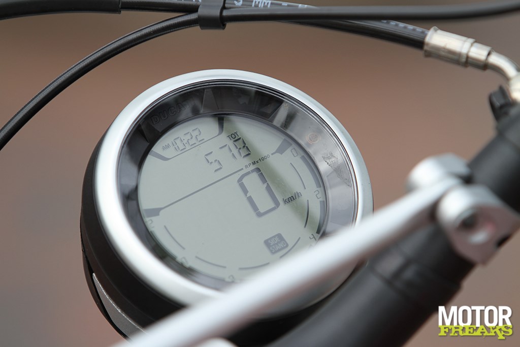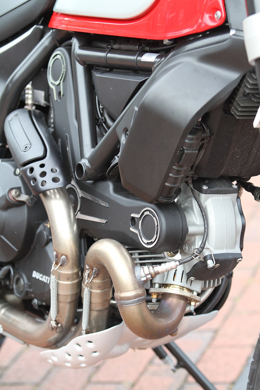 Nou is het qua vermogen met de standaard Scrambler best wel in orde, je zit niet zonder en je wordt er niet door overmand, maar per uitvoering is het natuurlijk nog de vraag of je er genoeg aan hebt. Stap op de Desert Sled en je zou misschien een iets fellere afgifte verwachten, maar uiteindelijk valt er best mee te rijden. Het is natuurlijk geen tot op de tanden getunede supermoto en het is met afstand veel meer dan de gemiddelde ééncilinder, zeker als je de oudere types (je zit toch een beetje met het retro idee te spelen) meerekent. Sowieso is er nog wel meer verschil. De motor is net wat breder, zowel ter hoogte van het zadel als onder de tank, dan een ééncilinder. Aan de andere kant zit je er perfect op als op een