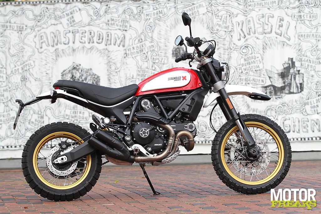 Zou dit best de hele dag kunnen doenKortom, alles is verschrikkelijk en hij snapt niet dat ze hier ooit één van verkopen. ‘Maar hij zit wel goed’. Hee…. Dat is een positieve opmerking. Dat belooft wat… Nou is hij al lang blij dat ik dit verhaal schrijf en niet hijzelf, maar daarbuiten ligt de focus ook nog het meest op de verschillen onderling dan een vergelijk met een ander merk. Want uiteraard is de Duc duurder, dat zijn ze altijd. En krijg je daar ‘minder’ voor, want dat krijg je ook eh… nou ja, dat komt ook wel voor. En dat een Z650 makkelijker rijdt, nou èn… het is geen Monster. Maar oke, de toon is gezet, de opmerkingen genoteerd en ik zal kijken of ik er iets van terugvind. Maar eerst de Sled. Al sinds die dag in Milaan heb ik mijn zinnen gezet op het proberen hiervan, want wat een briljant idee is dit… en de uitvoering al minstens even goed. Met een rechtstreekse sneer naar de XT500 van weleer is de motor ook in wit verkrijgbaar, met rode biezen rond de zijschilden. Als het mijn geld was geweest had ik honderd procent die kleur gekozen., En alsof al die andere Scramblers een voorzet waren, is de styling van deze machine volledig spot on. De vorm van de tank, de ronde koplamp en teller, de spaakwielen, het blok inderdaad, gewoon alles klopt. Goed, de eerste schok overwonnen is het gewoon een heel goede uitvoering van een slim idee, maar toch. Niet voor niets zijn meerdere collega’s van de introductie teruggekomen met de opmerking ‘dit is de Scrambler zoals ‘ie vanaf het begin had moeten zijn’. Al vind ik rationeel gezien dat ze het met de eerste Scrambler al bij het juiste eind hadden, eenvoudig
