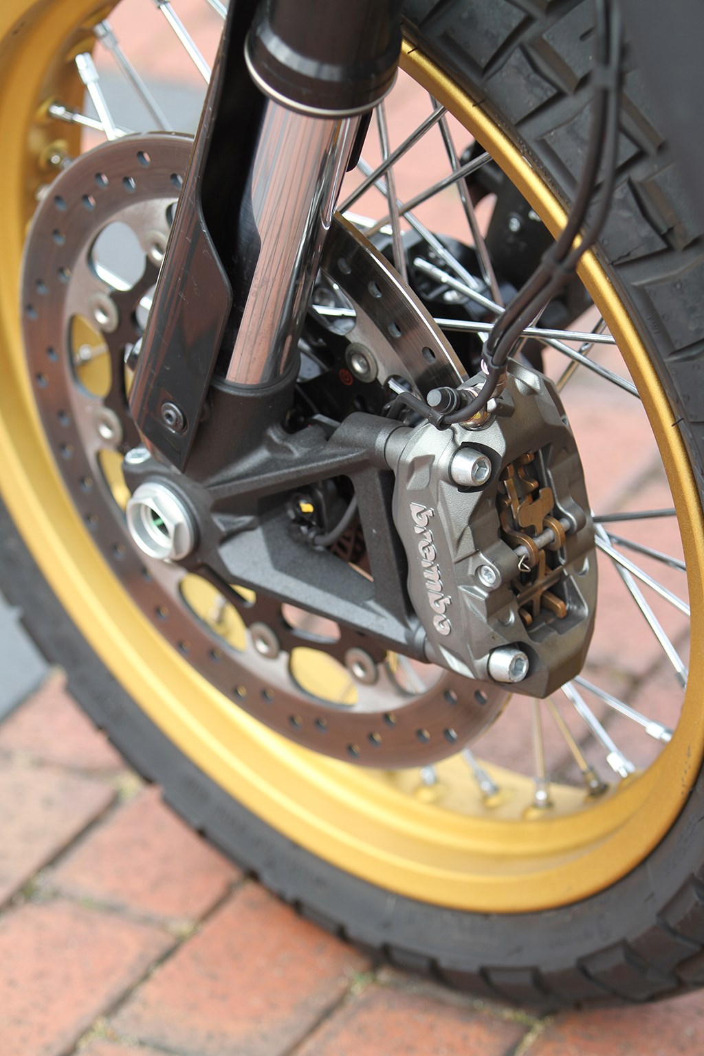 Eigenlijk meer dan genoeg: de enkele schrijf met Brembo Monobloc. Bovendien is de vork instelbaar