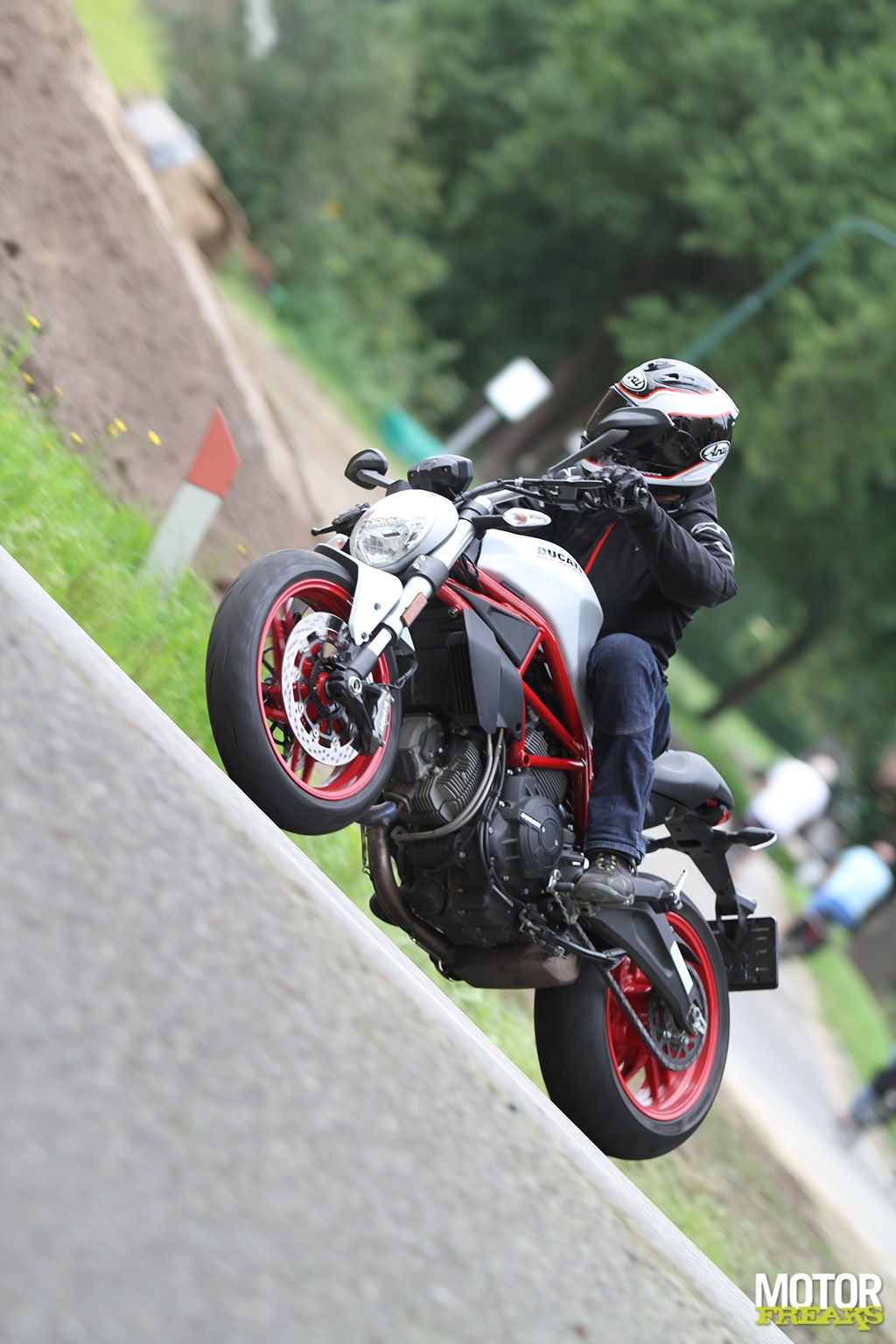 “Eigenlijk mis ik alleen nog een 800 SuperSport”, bedenk ik me als ik voor de zoveelste keer overstap van de Scrambler op de Monster. Ik heb in één dag, nee nog veel minder, al van een crossbaan overgestapt naar het betere Naked rijwerk inclusief wheelies en voetsteuntuning,