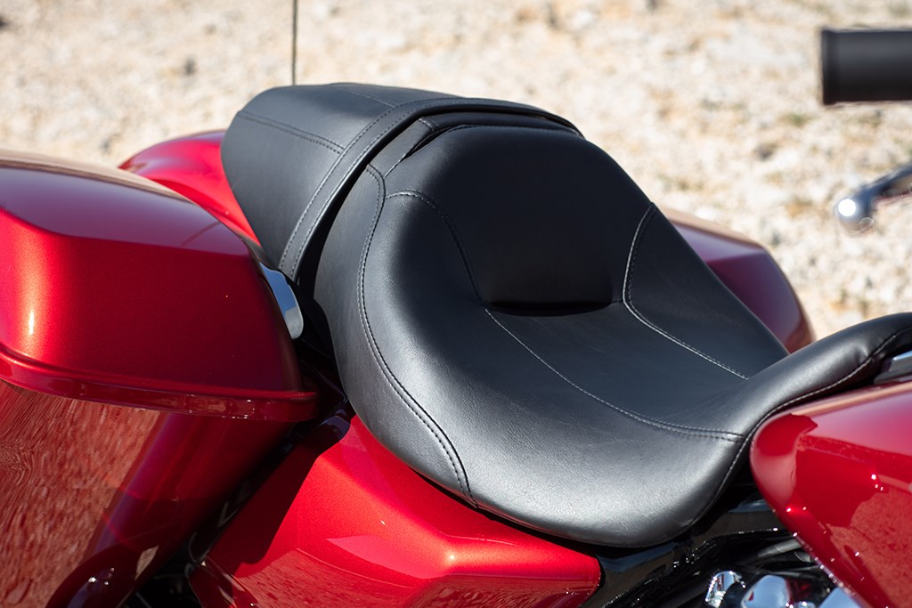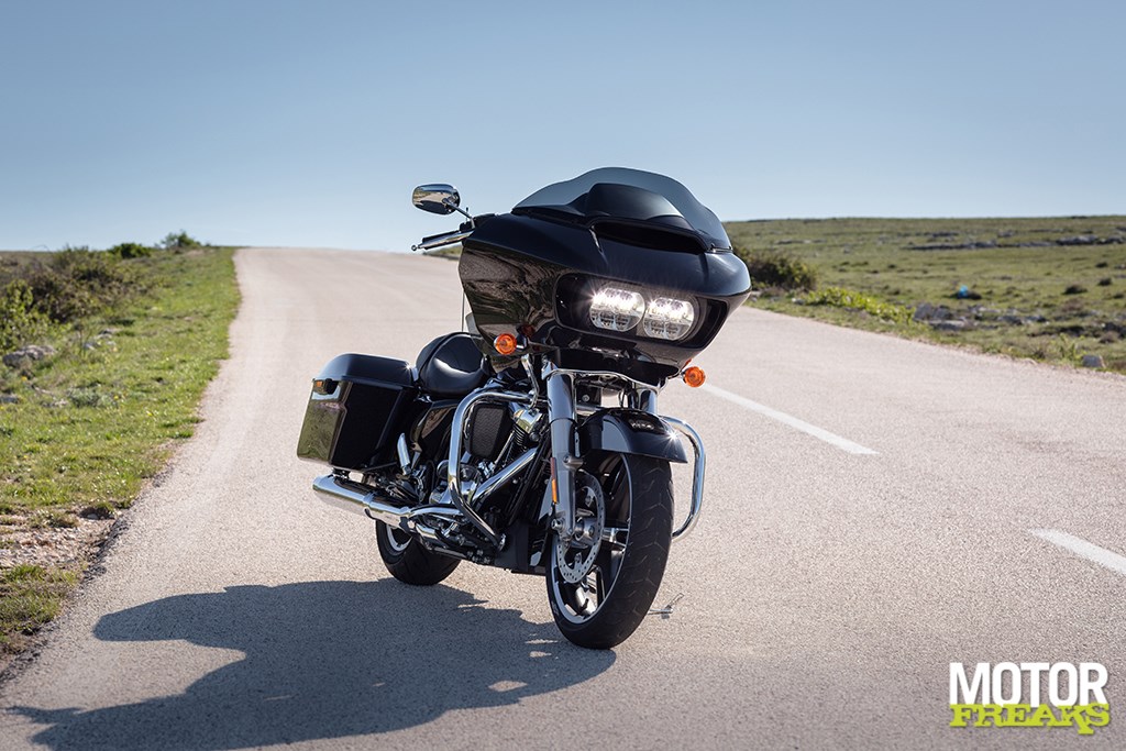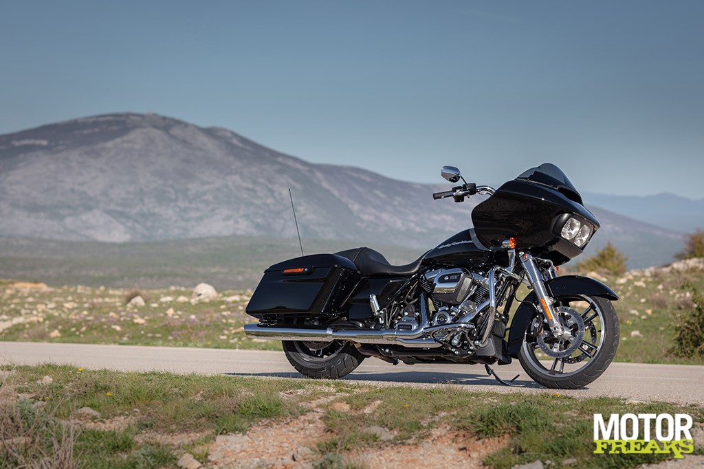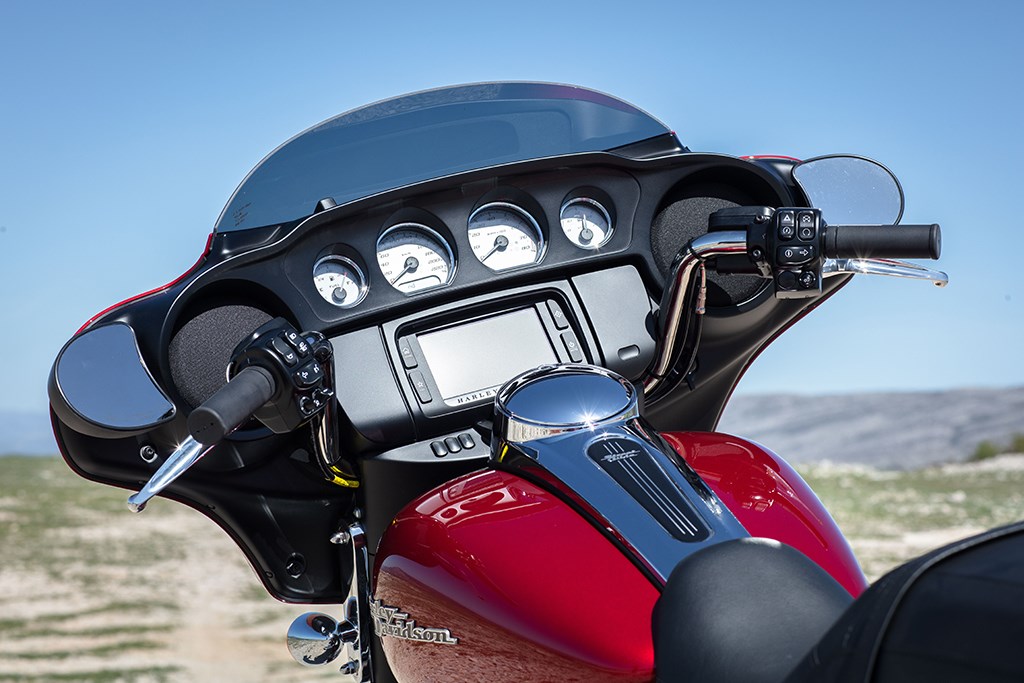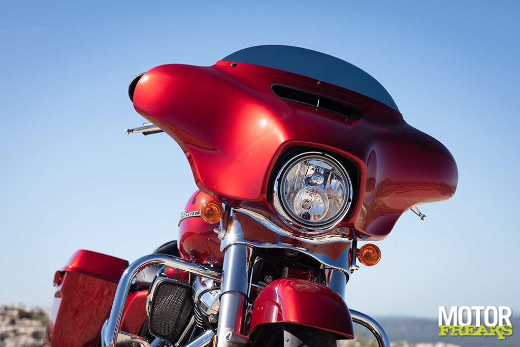 Hoezo een racehelm is geen gezicht?speler op standje 10 en met de cruise control op 90 per uur heerlijk genieten van de natuur, er zijn slechtere manieren om je vrije zondagmiddag door te brengen. Life is Good! Snap nu best waarom hele volksstammen verslingerd zijn geraakt op deze Harley Tourers. Trouwens, over cruisen gesproken. Het Milwaukee Eight motorblok is gezegend met een heerlijk brede, sterke en soepele powerband met een maximum koppel van 150 Nm dat al bij 3.250 toeren per minuut wordt afgegeven, waardoor het geeneens veel uitmaakt in welke versnelling je zit. Van derde tot zesde versnelling is cruisen gegarandeerd. Beide modellen zijn met hak-teen schakeling uitgerust, hoewel dat wat mij betreft geeneens nodig was geweest. De zesversnellingsbak is weliswaar gezegd met Harleys welbekend ‘Klak!’ als de 1een 2eversnelling