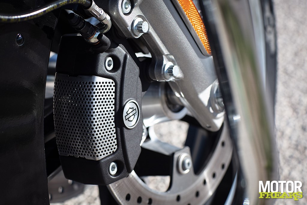 D'r mag een Harley logo op staan, maar 't zijn toch echt Brembos, die remmen. Valbeugel kun je ook je voeten op leggen