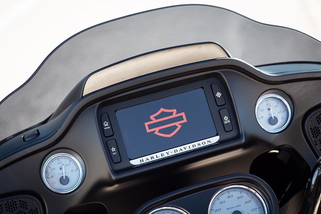 Boom! Box infotainment met TFT kleurenscherm. Radio, MP3 en navigatie binnen handbereik. Nu alleen nog afleesbaar maken op de Road Glide a.u.b.