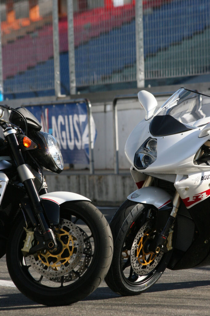 maar inwendig wel up-to-date. Maar goed, we hebben ’t hier niet over koekblikken, maar twee modellen die binnen de ‘standaard’ range van MV Agusta als topmodel staan aangemerkt.