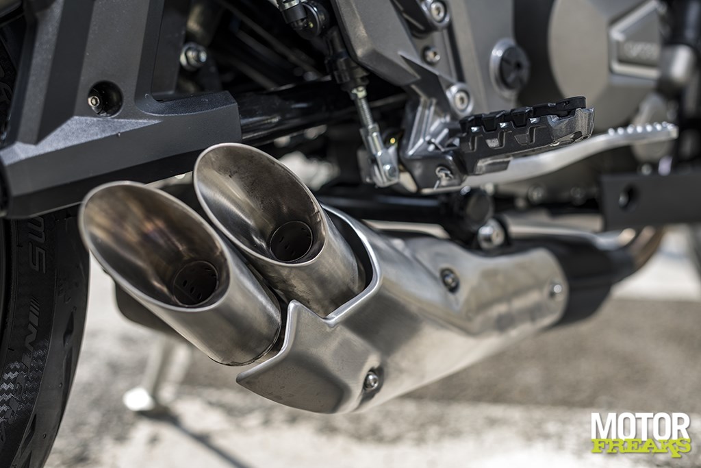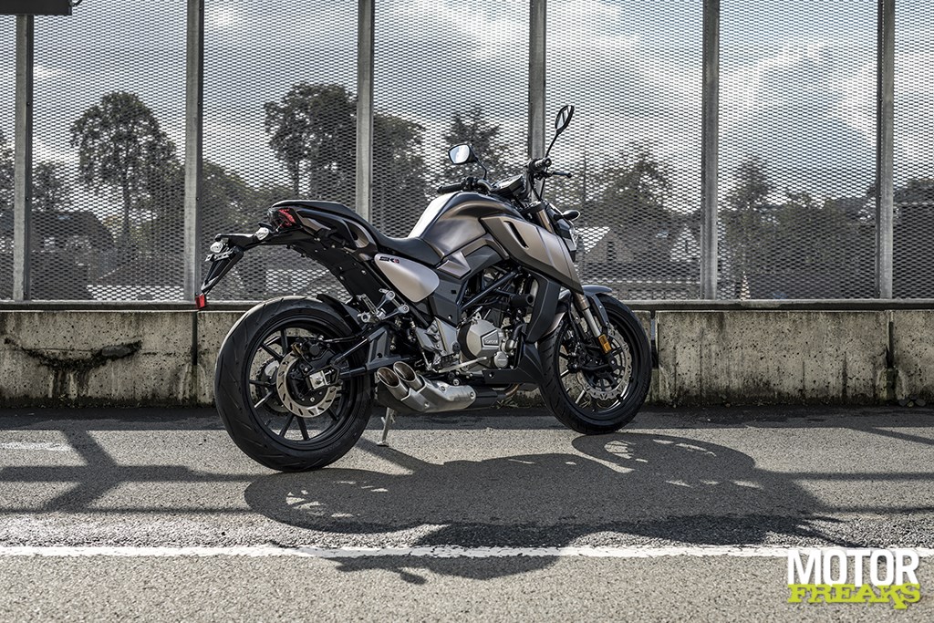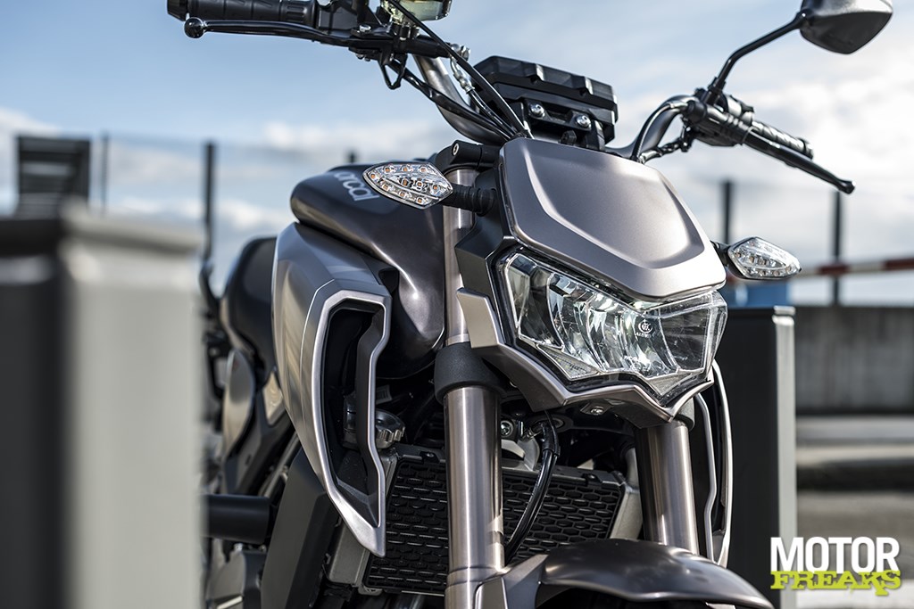 Geen retro-vibes dus, maar een sportieve Roadster die op en top modern is. Modern qua looks, hoewel hier en daar toch wat invloeden van andere merken terug te vinden zijn. De koplamp heeft in mijn ogen een hoog Kawasaki Z gehalte, terwijl de forse luchtinlaten aan de zijkant van de tank daarentegen van de Yamaha MT serie lijken te zijn gekaapt. Toch is het eindresultaat als je het mij persoonlijk vraagt zeker wel geslaagd. Modern en lekker fris, het enige waar ik niet echt van onder de indruk ben is het design van de achterbrug, dat in mijn ogen afbreuk doet aan de rest van het ontwerp.