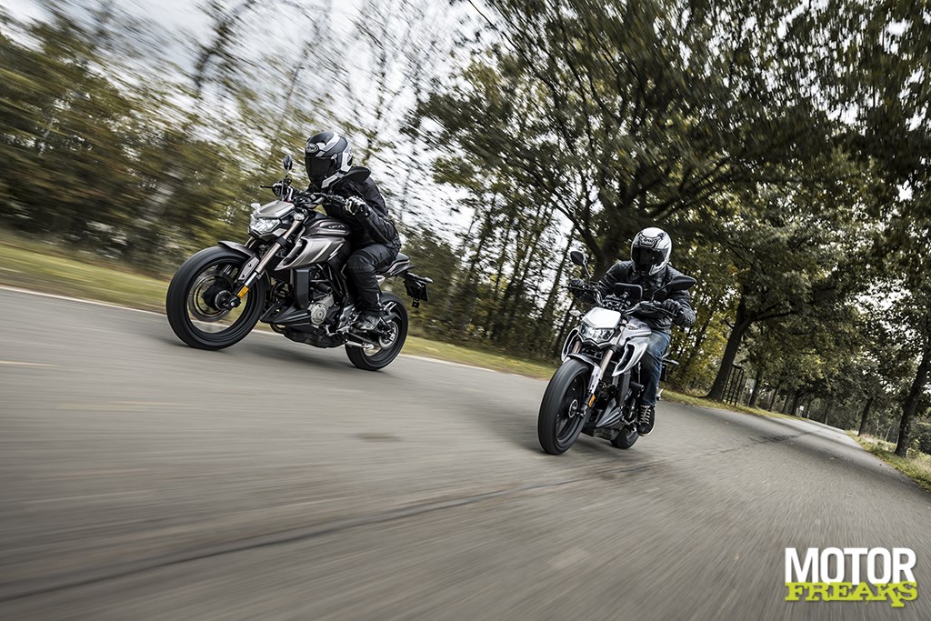 Niet alleen de looks zijn modern, datzelfde kan ook van de techniek worden gezegd. Beide motoren hebben een sportief rijwielgedeelte dat uit een vakwerk buisframe in combinatie met een 41 mm upside down voorvork en een in veervoorspanning instelbare centrale monoshock bestaat. De wielbasis is met 1.410 mm heerlijk kort om lekker wendbaar te zijn. In het voorwiel is een enkele