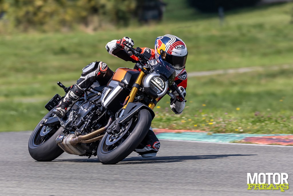 Genoeg gasten op échte sportfietsen die je een slechte dag kunt bezorgener wel serieus over nagedacht om met wat extra veervoorspanning de achterzijde iets te verhogen om zo nog iets meer grondspeling te verkrijgen, echter de beperkte toegankelijkheid van deze verstelmogelijkheid, met hoogstwaarschijnlijk (net als bij veel andere motoren) afgeschraapt vel van je knokkels tot gevolg, heeft ons wijselijk doen besluiten maar geen poging te doen.