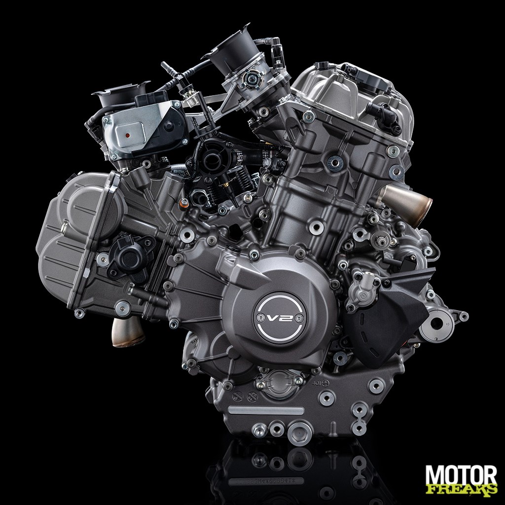 De nieuwe V2 haalt z'n cilinderinhoud van 890cc uit een boring x slag van 96 x 91,5 mm. Het blok kent twee configuraties. De standaard versie levert een topvermogen van 115 pk bij 10.750 tpm met een koppel van 93,3 Nm bij 8.250 tpm, waar dat bij de sportievere variant 120 pk vermogen en 92,1 Nm koppel bij gelijke toerentallen is. De sportievere (120 pk) uitvoering kan ook met raceuitlaat worden geleverd voor gebuik op circuit, wat het topvermogen naar 126 pk bij 10.000 tpm brengt, bij een koppel van 98 Nm bij 8.250 tpm. Dat plus een besparing van 4,5 kilo aan gewicht.