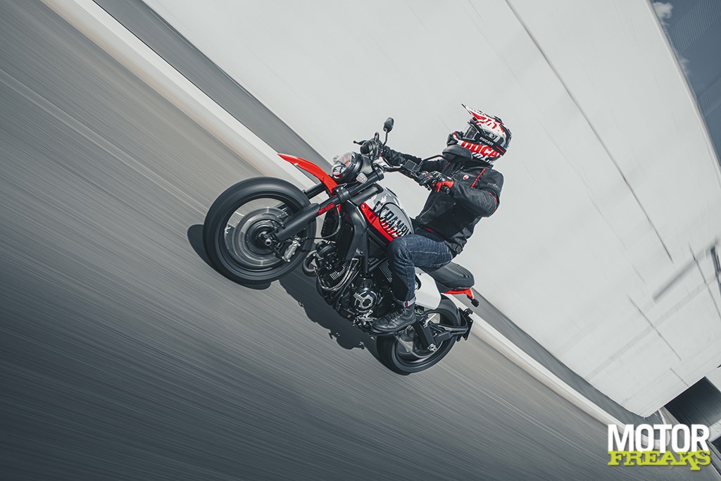Wat je ook zult merken is dat het zadel net effe wat hoger is geplaatst, 805 mm versus de 798 mm van de Icon en Nightshift, waardoor je vermoedelijk net dat beetje actiever op de motor zit om in de stadse omgeving in de aanval te kunnen gaan. De Kayaba 41 mm upside down en monoshock zijn verder gelijk aan die van de Icon en Nightshift.