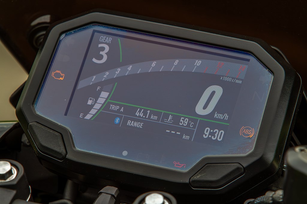 Dat ‘iets hoger’ lijkt gedurende die eerste rit een understatement te zijn. Waar in de eerste rit met de Ninja 500 de verbruiksindicator never nooit onder de 1 op 30 kwam ligt dat cijfer 30 nu ver buiten bereik. Wat ik ook doe, beter dan 1 op 28 komma nog wat wordt het niet, maar dat is de maagdelijke kilometerstand van nog geen 100 kilometer waarmee we de Z hebben meegekregen ook deels toe te rekenen. Dat plus het feit dat er behoorlijk veel wind stond en de A2 volledig was dichtgeslibd. Het weer wordt de dagen daarna er alleen maar slechter op, waardoor noodgedwongen plan A, een monstertrip maken met de Z500, moet worden geschrapt. Aan ideeën geen gebrek: met een volle tank het Pieterpad rijden of vanaf huis een rondje IJsselmeer. Of nog vetter: met slechts één keer tanken op en neer naar de Eiffeltoren in Parijs, maar om zo’n megatrip in dit pokkenweer te doen… neen, dankuwelzeerbeleefd.