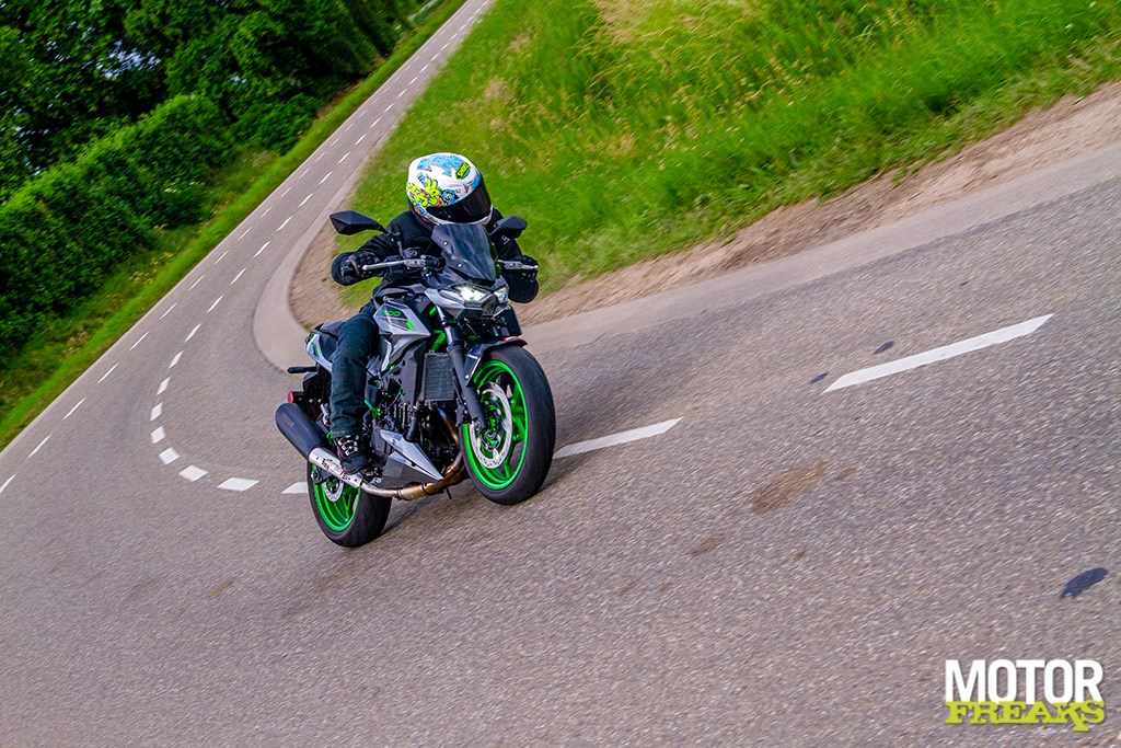 Wanneer ik vanuit Hoofddorp met de Z500 binnendoor naar huis stuur ben ik binnen vijf minuten alweer helemaal in m’n element. Wat sturen betreft ontlopen de twee 500-modellen elkaar niet. Het enige verschil zit ‘m in de zithouding die bij de Z net iets meer ontspannen is door het bredere stuur dat ook nog eens iets hoger is geplaatst dan de boven de kroonplaat gemonteerde clipons van de Ninja.