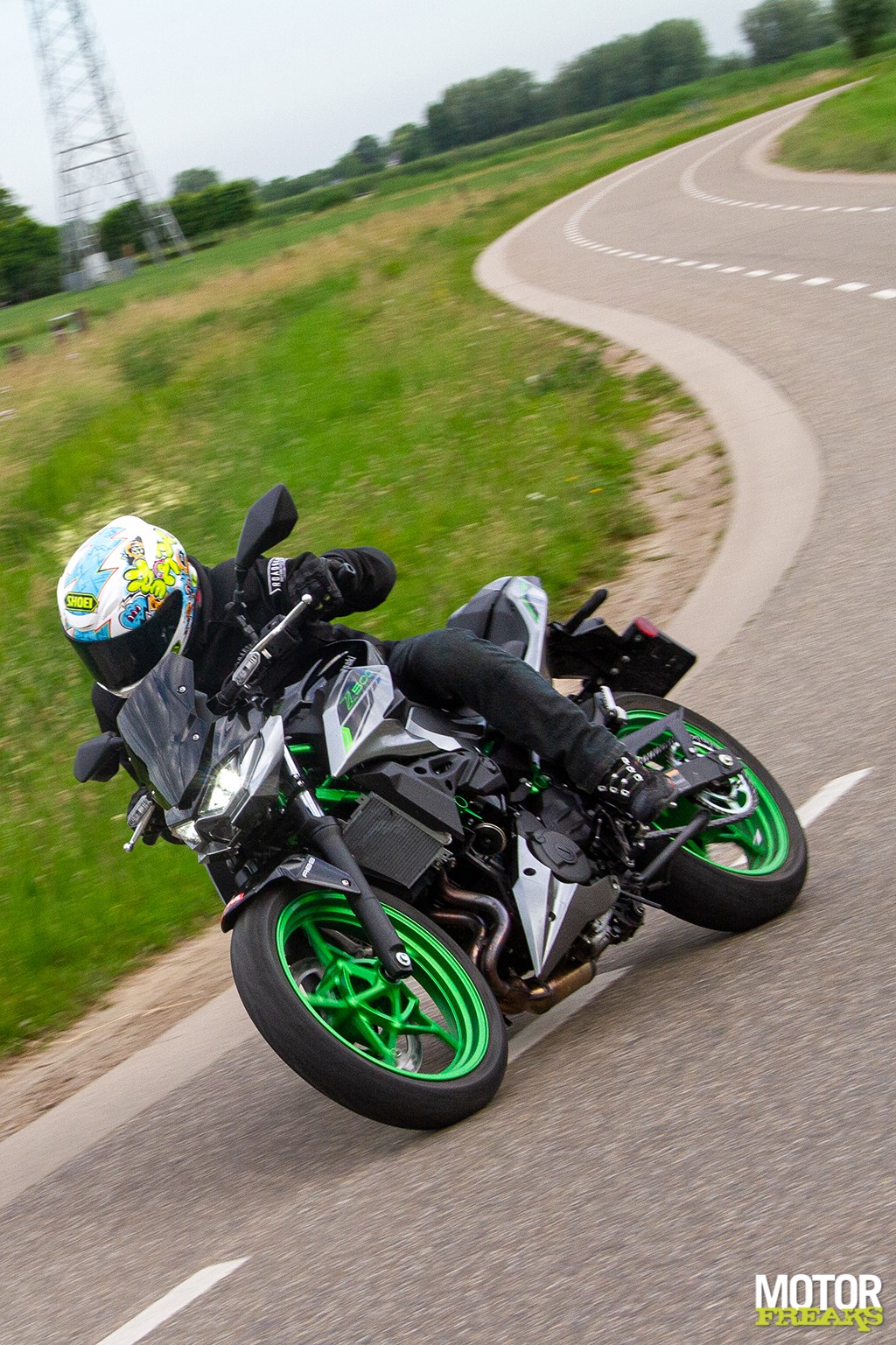 Met een tripmeterstand van 117,1 kilometer wordt de Z500 voor dat eerste rondje ‘om de kerk’ met 5,28 liter E10 afgetankt, maar daar kan geen enkele waarde aan worden gehecht: ze waren ‘m bij Kawasaki vergeten af te tanken in Hoofddorp. Het TFT-display meldt een gemiddeld verbruik van 1:28,4 en dat lijkt ons veel reëler dan de gecalculeerde 1:22,2. De voor ons bekende dijkwegen zijn met de Z500 een waar genot, heerlijk om te kunnen vegen zonder dat je daarbij omwonenden tot overlast bent. Sturen doet de Z als de gesmeerde bliksem en wat ‘ie aan acceleratie mist wordt met gooien en smijten weer gecompenseerd. Dus niet stop-and-go, maar zoveel mogelijk de snelheid erin houden, wat op zich ook nog eens een gunstig effect heeft op het verbruik. Het overgrote deel van de route gaat door 60-km zones (80-km wegen beginnen langzamerhand een zeldzaamheid te worden), dorpskernen en een klein stukje A27 om de Lek over te steken.