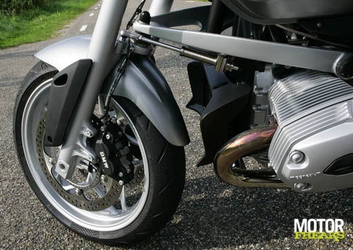 Bij de voorkant vond ik het zelf in het begin opvallend, dat bij acceleratie het redelijk lijkt dat je voorkant uit voorvering wordt getrokken zonder dat het voorwiel los komt, terwijl bij stevig aanremmen de motor niet echt in zijn voorvering duikt. Stevig aanremmen gaat goed op de R1200R. De vertraging is goed, waarbij de 320mm zwevende schijven goed zijn te doseren. Niet alleen geeft inderdaad het nieuwe ABS geen ratelend geluid meer als je de rem inknijpt, ook is de feedback goed te noemen. Ook de achterrem met een 265mm remschijf geeft een goede feedback. Wel jammer dat naar eigen smaak de feedback wel erg snel is dat het ABS in werking wordt gezet. Wat meer remvertraging aan de achterkant had naar mijn mening wel gemogen.