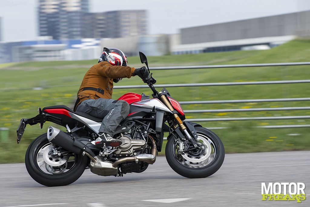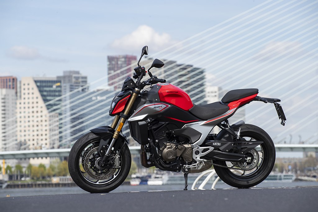 Bij de fotolocatie wordt gedurende de fotoshoot de overstap naar de SRT 600 SX gemaakt, waardoor het verschil tussen de twee meteen opvalt. De 600 heeft niet alleen een veel fijnere zit, maar ontpopt zich als een eersteklas pretpakket. Wat een ontzettend fijne fiets. Wat sturen betreft voelt de SRT 600 SX tijdens deze speeddate spot on, maar we zijn minstens zo onder de indruk van het blok dat wat performance betreft niet echt veel voor de 700 onderdoet. Tuurlijk, bij een stoplichtsprint zal de 600 het onderspit delven tegen de 700, maar dat wordt ruimschoots door het frisse en fruitige stuurgedrag gecompenseerd. De 600 zal zeker voor een beginnend motorrijd(st)er al voldoende zijn, terwijl ‘ie zelfs ervaren rotten als ondergetekende niet verveelt. Dus waarom zou je dan die extra 1500 euro prijsverschil nog op tafel leggen?