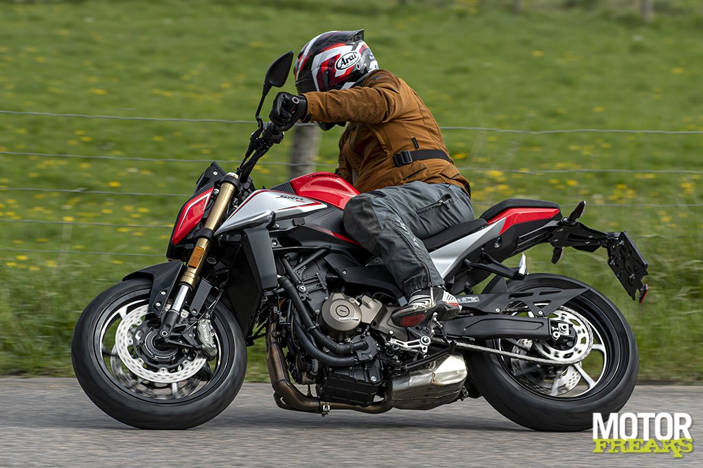 Wat sturen betreft doen de twee SRK modellen niet onder voor elkaar, maar dat is ook niet vreemd. De twee modellen hebben hetzelfde rijwielgedeelte met hetzelfde frame en dezelfde vering, en hebben dezelfde Brembo remmen, waardoor in feite alleen de zithouding anders is en het dus meer een vraag is waar je voorkeur naar uit gaat: wil je een Supersport, of wil je liever een sportieve Naked. Voor mij persoonlijk is dat een lastige keuze. Qua design spreekt de RS meer tot de verbeelding en die beschikt bovendien over een veel fraaier TFT-kleurendisplay, maar daar staat tegenover dat de zithouding van de Naked toch echt de voorkeur heeft. Qua design is de Naked SRK 600 helemaal niet verkeerd, met uitzondering van het display dat te klein is voor de franjes waaruit het is opgebouwd. Te druk, te veel kleurtjes en streepjes, waardoor het onoverzichtelijk wordt. En laat nou een display precies datgene te zijn waar je tijdens het rijden op uit kijkt.