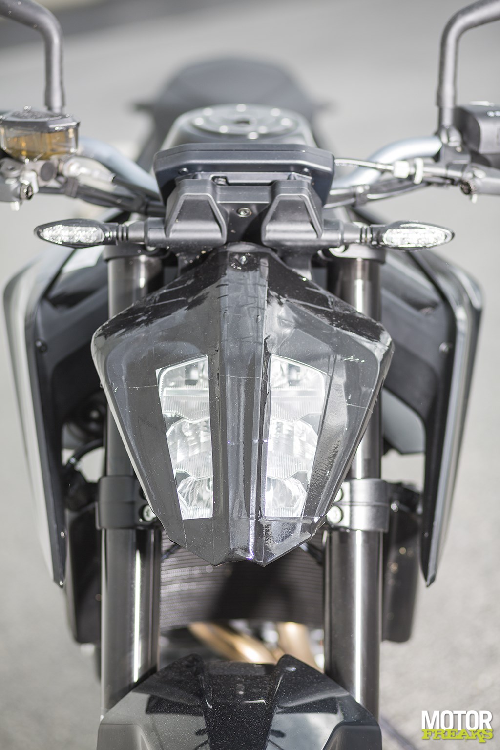 Eendenplakband. Alsof we hier zelf niet de koplamp van de 1290 Super Duke bij kunnen verzinnen. TFT kleurenscherm, zoals bijna alle KTM modellen anno 2018