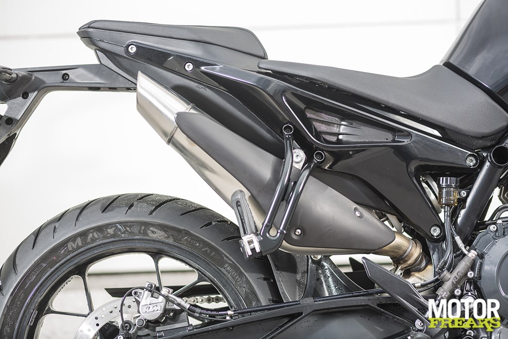 Hadden we al gezegd dat de LC8c heerlijk compact is gebouwd? De übervette uitlaat-in-kontje van het conceptmodel is ingeruild voor een 'normale' demper à la de 690 Duke