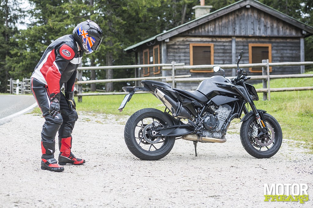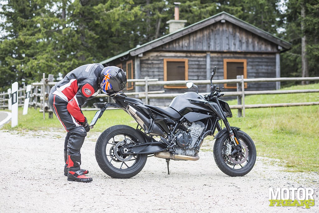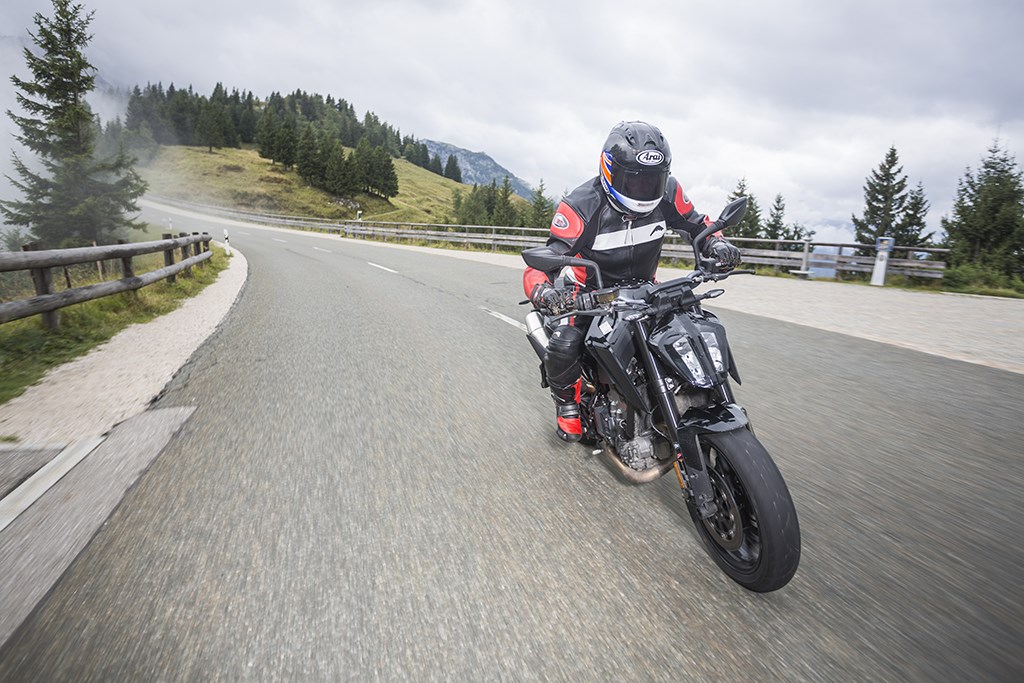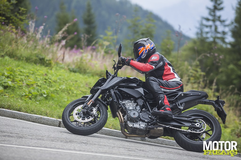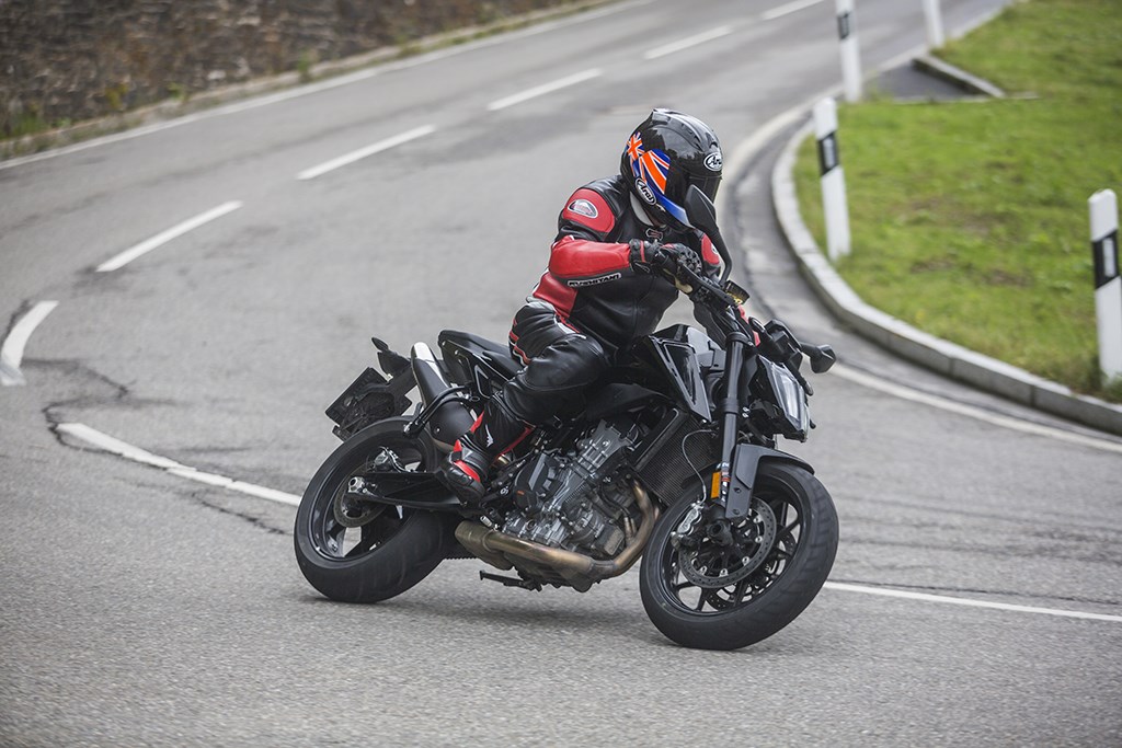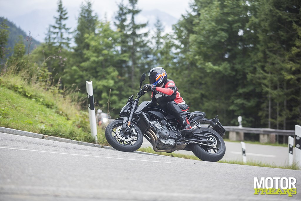 De kans om dit allemaal zelf aan den lijve te ervaren kwam in een korte rit van 20 minuten op het prototype van de 790 Duke over de deels nog natte wegen hoog in de bergen rond Salzburg, op een privé tolweg die Hitler’s voormalige zomerverblijf in Berchtesgaden, het Adelaarsnest, overziet. Ondanks dat de motor de afgelopen jaren meermaals door de motorpaparazzi tijdens testwerkzaamheden is gespot,