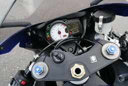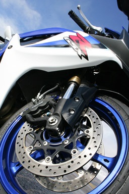 Om van 250+ naar 0 te gaan hebben we de radiale rempomp samen met de radiale remklauwen flink losgelaten op de 310mm ronde schijven. Zelfs onder deze extreem koude weersomstandigheden had ik hier weinig op aan te merken, niet vreemd als je nagaat dat de zeshonderd nu dezelfde remmen heeft als de duizend. Zeker de eerste dag remde deze GSX-R600 beter dan de Yoshimura 1000 met Lucas schijven, die al eerder aan de beurt was geweest. Meer gevoel in de voorkant, meer feedback in wat er nu precies gebeurde, een enorme vertraging volgde: voor ik het wist stond ik al weer stil. Het stuurgedrag voelde meteen vertrouwd aan, maar meer als dat konden we er niet van bakken. Daarvoor waren de omstandigheden verre van ideaal, en konden we nog niet in de buurt komen van wat serieus sturen mag worden genoemd. Daar zullen we tijdens onze uitgebreide introductietest samen met de zevenenhalf dan ook uitgebreid op terugkomen. Als we kijken naar de windbescherming valt het op dat het ruitje wat verder doorloopt, waardoor je prima uit de wind kan gaan zitten. Dat is ook wel is lekker als je niet op het circuit aan het rondvegen bent maar gewoon - net als ons - lekker op de (snel)weg aan het rijden bent. Tevens is de kortere tank verder naar voren geplaatst en met de mogelijkheid de voetsteunen in 3 posities in te stellen heeft Suzuki een goede stap richting comfort gezet. Het basis gevoel is vertrouwd en dat is positief te noemen. Vergeleken met de R6 2006, die compromislozer is, heeft de nieuwe 600 van Suzuki op het eerste gezicht een meer "allround" karakter, Het is niet of het een, of het ander, nee gewoon niet kiezen...we doen lekker en het een, en het ander, is vast en zeker de gedachtegang geweest Suzuki's engineers in Japan.