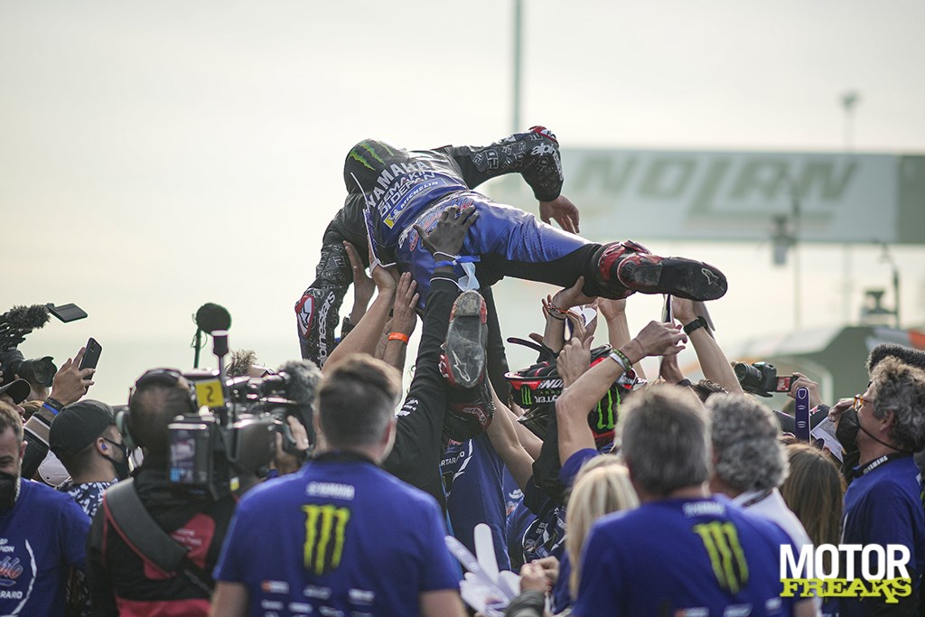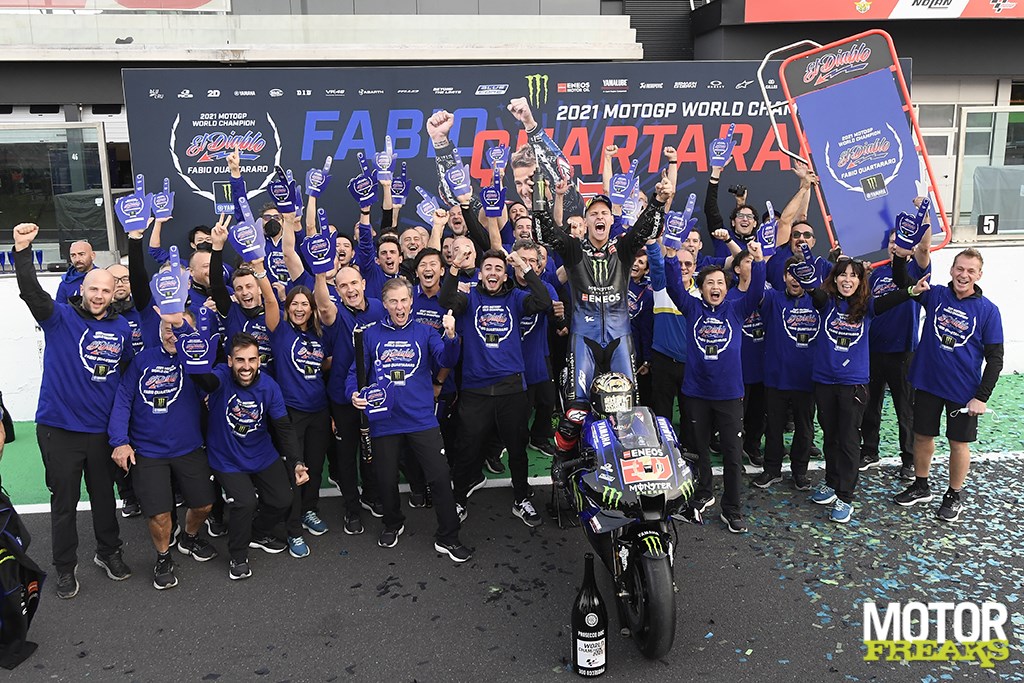Totdat Bagnaia met nog 5 ronden te gaan crashte en Quartararo zeker van zijn allereerste wereldtitel was. Dankzij een crash van ook Miguel Oliveira leek El Diablo zijn wereldtitel met een fraaie podiumplaats te kunnen vieren, maar werd op de valreep door Enea Bastianini van het podium geduwd. Zijn wereldtitel vieren met een vierde plaats, na zich op de 15e plaats te hebben gekwalificeerd, was desondanks een indrukwekkende prestatie.