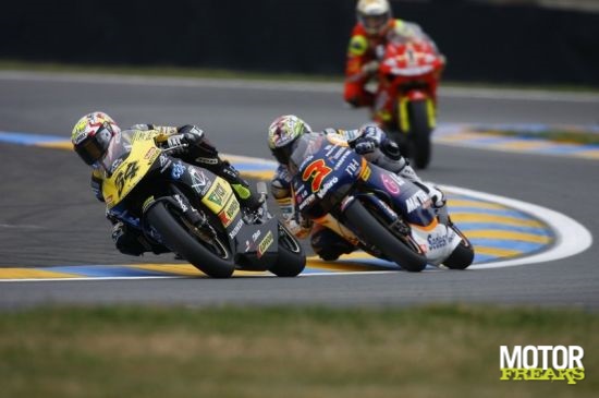 De zesde plaats was voor Marco Simoncelli die een groot deel van de race in gevecht was geweest met Mika Kallio, Shuhei Aoyama en Anthony West. Kallio werd zevende voor Alvaró Bautista die zich prima terug vocht naar een achtste plaats. Shuhei Aoyama en Anthony West moesten tegen het eind van de race het tempo wat laten zakken en legden beslag op de plaatsen negen en tien.